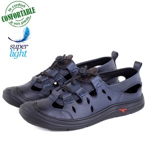 Sandales Pour Homme Confortable 100% cuir Bleu LO-038B