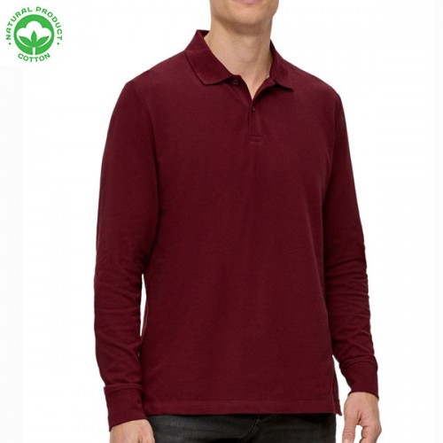 Polo manche longue pour homme en coton piqué Bordeau – Alliant élégance professionnelle et confort