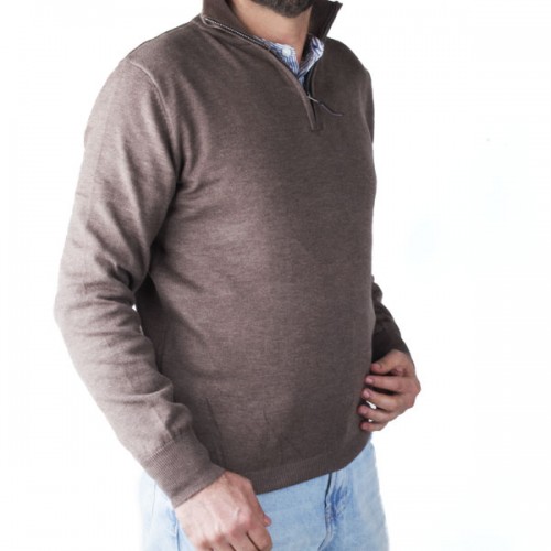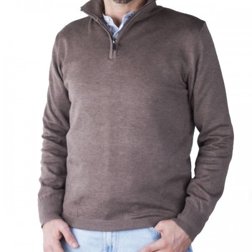 Pull Homme Demi-Zippé Marron chiné - Élégance et Confort 1600