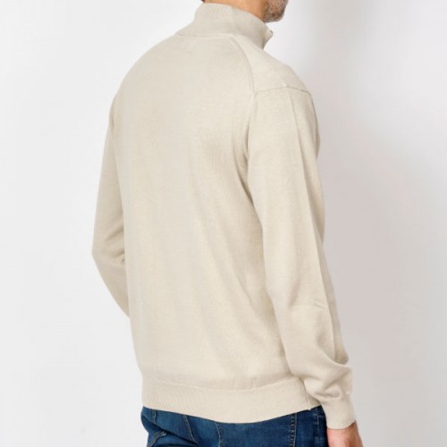 Pull Homme Demi-Zippé Beige - Élégance et Confort C1600